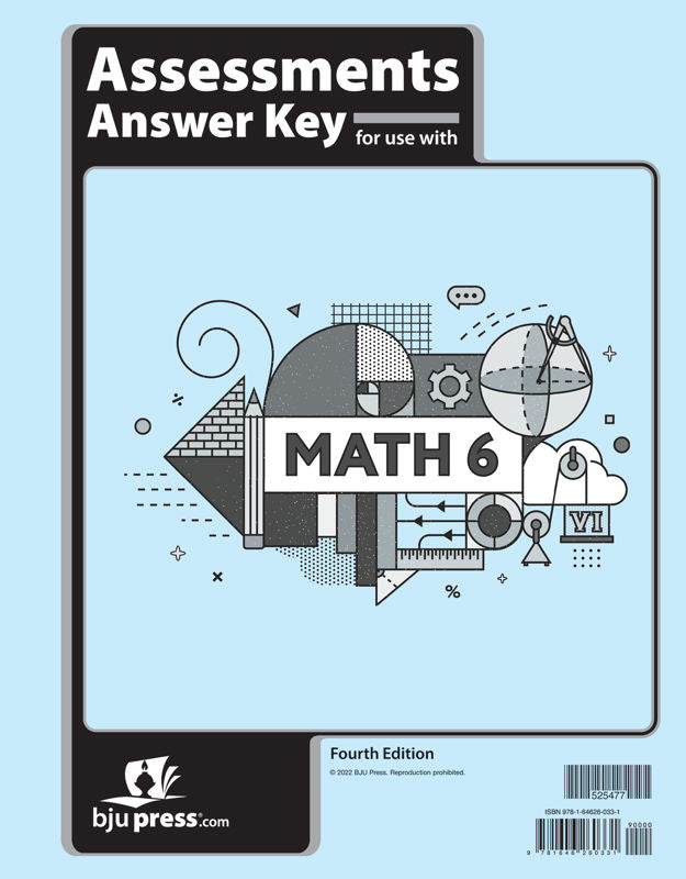 | Book Title | BJU Press Math 6 Assessments Answer Key, 4th Ed |